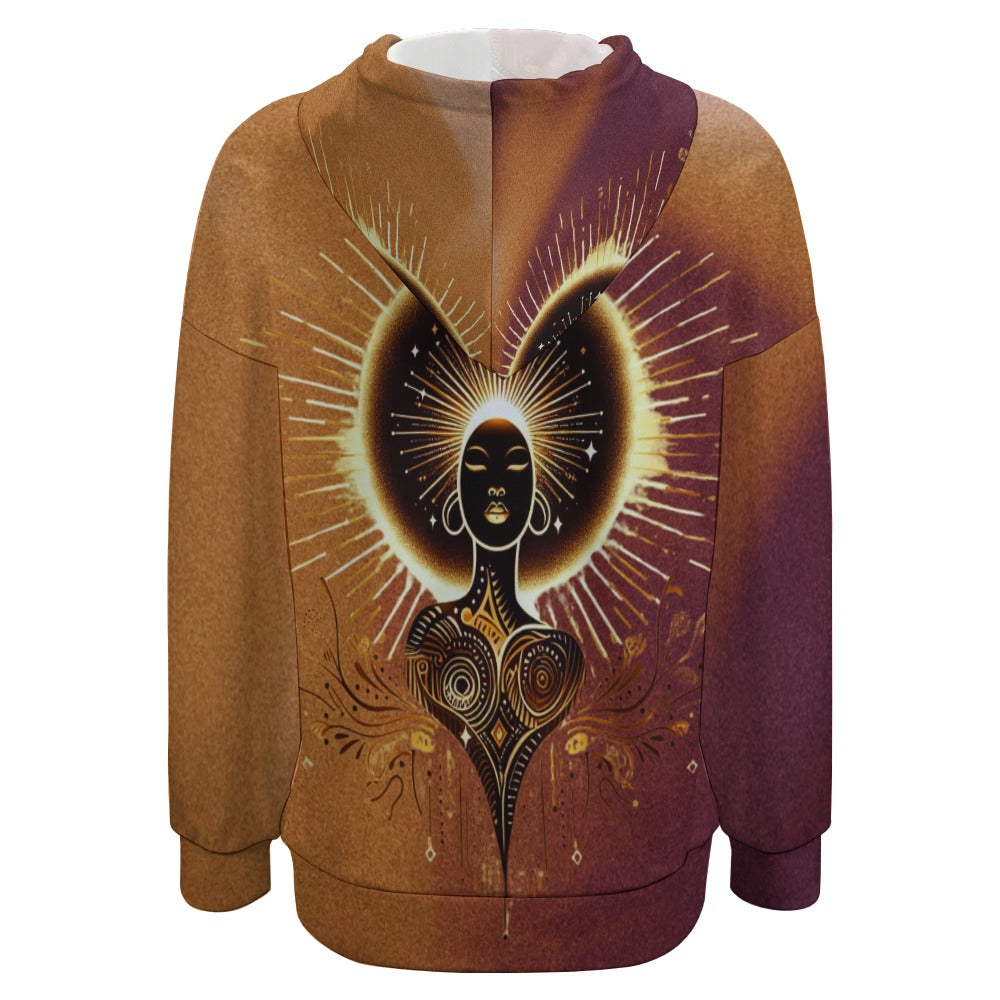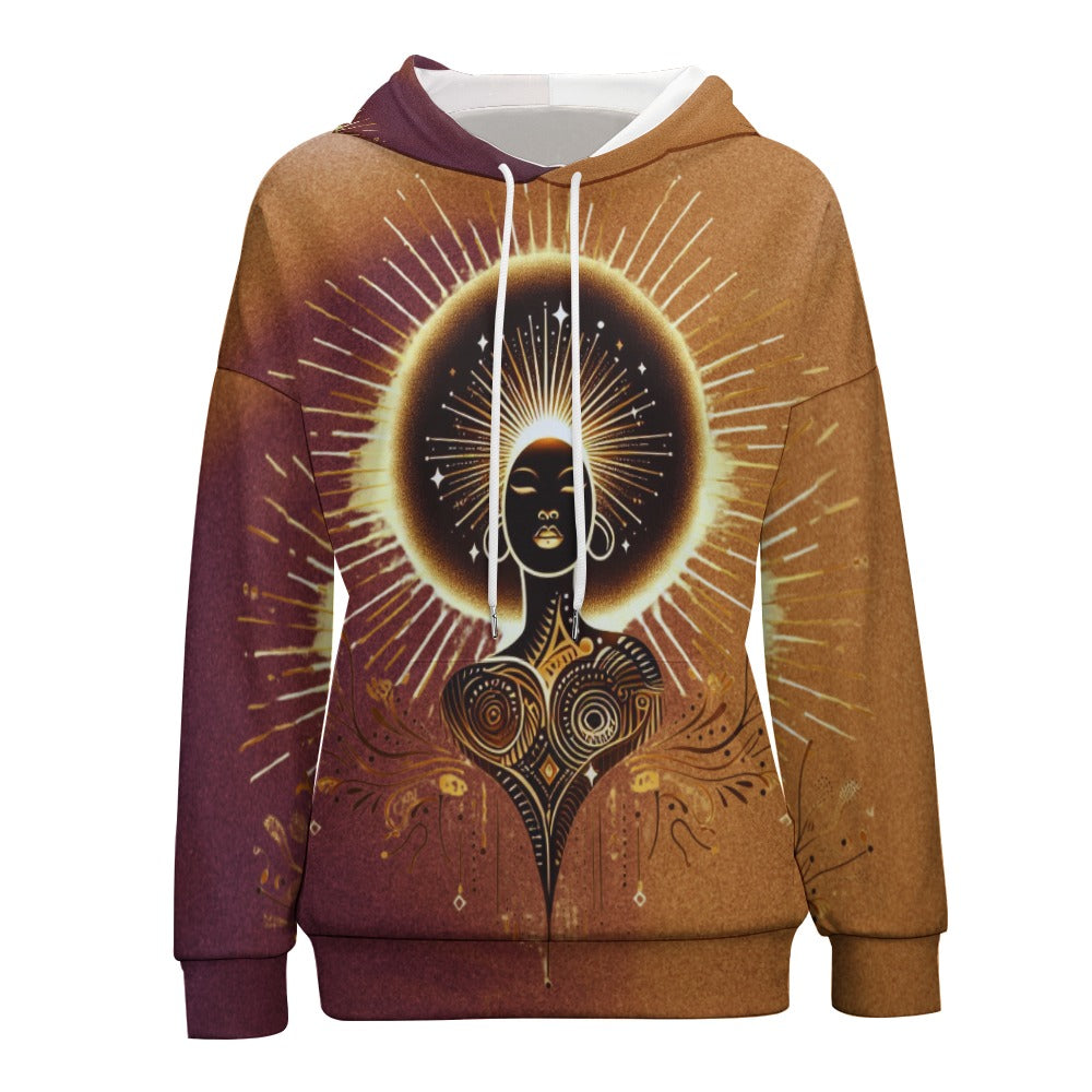 The drop-shoulder silhouette adds effortless edge, while the adjustable drawstring and roomy front pocket bring both function and flair. Whether you're layering up for a crisp morning or making a statement at brunch, this hoodie moves with you—bold, relaxed, and unapologetically regal.
