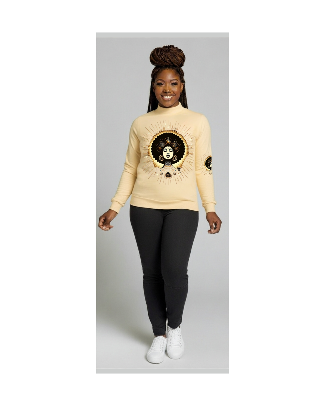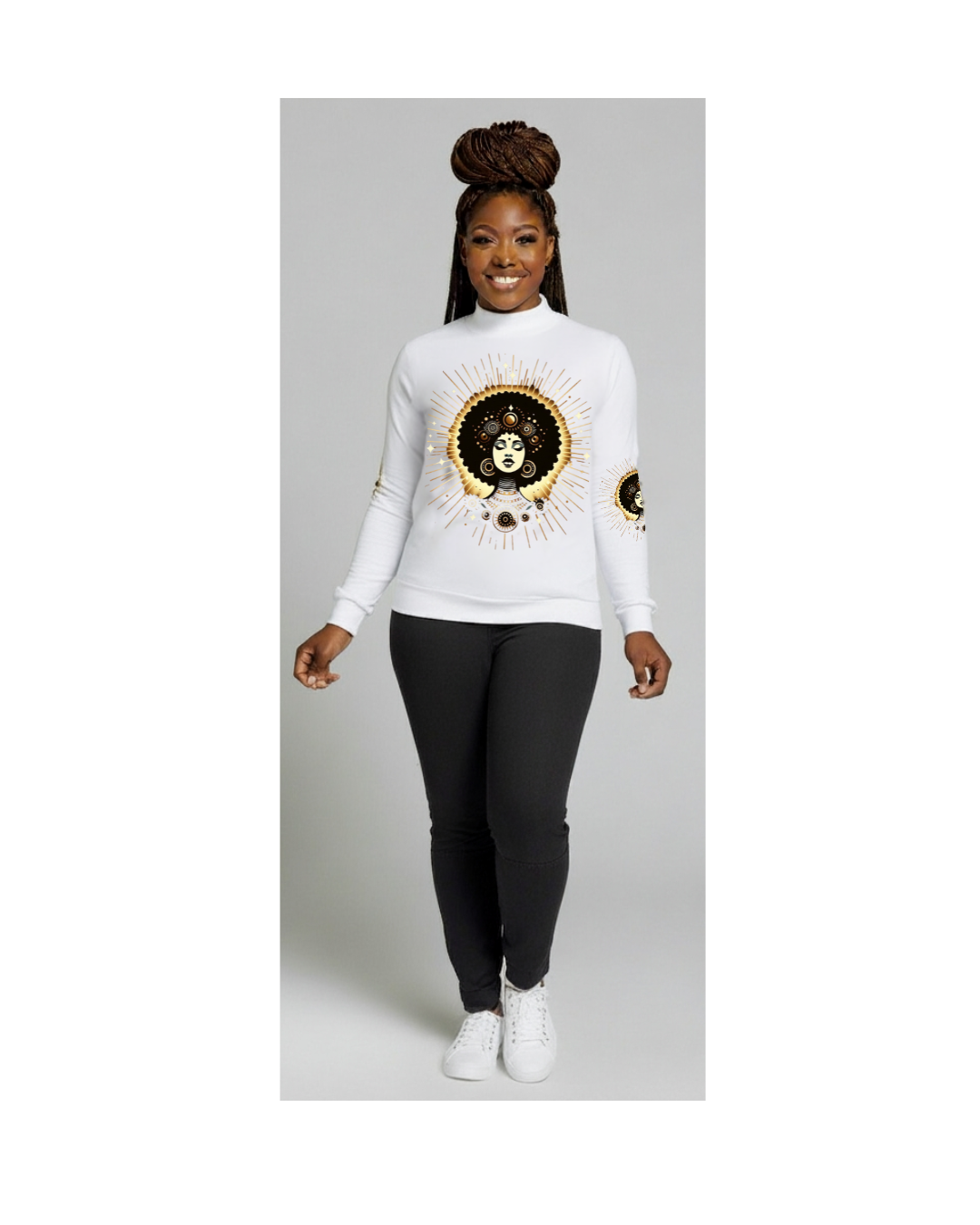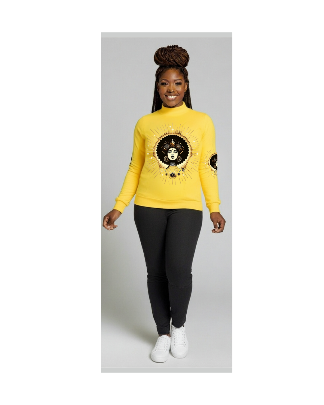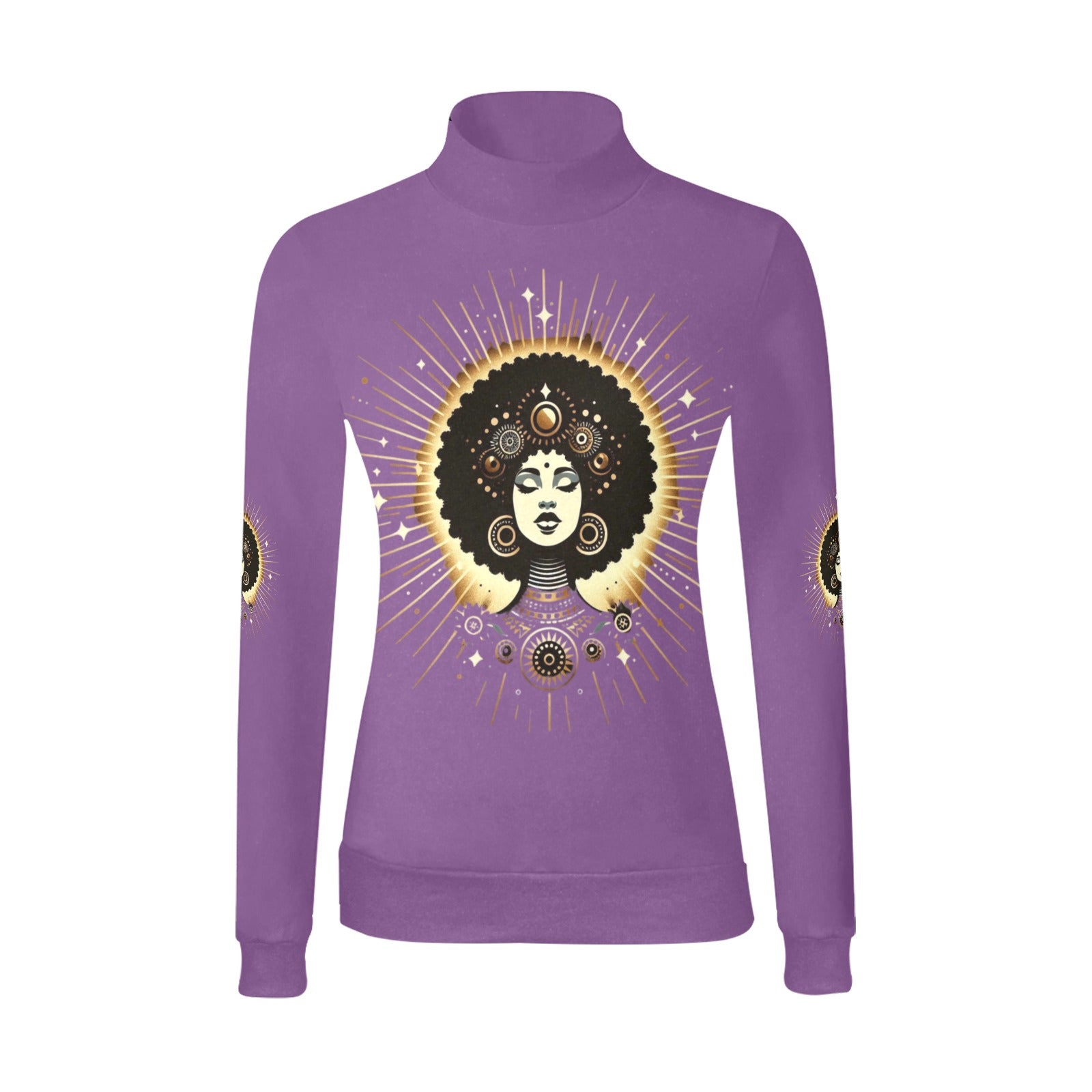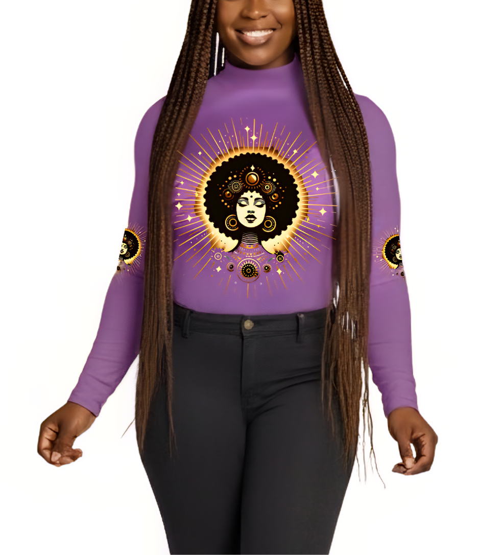 Step into your lineage, step into your light. The "Tribeline"Mock Neck Sweater isn't just a sweater--it's a statement piece that channels the bold geometry of Afrocentric tradition with a modern twist. Crafted from a sleek poly-spandex blend. It offers soft stretch and slim silhoutte that hugs without holding you back.